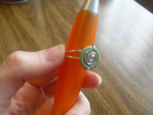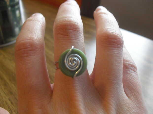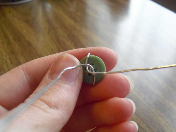 A continuación, doble el alambre hacia abajo y alrededor a la parte inferior del botón y otra vez, retorcer. Esto parecerá un poco voluminoso y hará que el anillo se sientan un poco más en el dedo. Pero si usa un botón bastante pequeño, no habrá suficiente peso que caiga, y sólo sentará bastante como usted por favor en la parte superior.