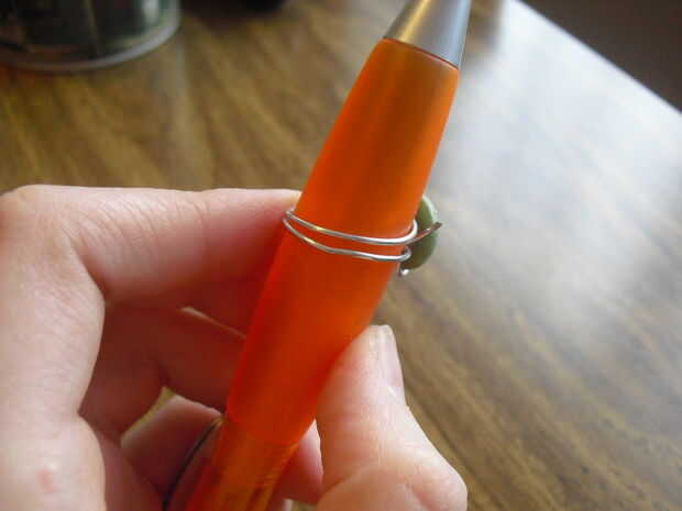 Para la banda, todo lo que tienes que hacer es seguir los mismos pasos que el primer anillo y tuerza los alambres debajo hasta el final. En estas fotos, he mostrado cómo también puede utilizar un bolígrafo u otro objeto cilíndrico para hacer un anillo de tamaño adecuadamente, si no tienes un mandril.