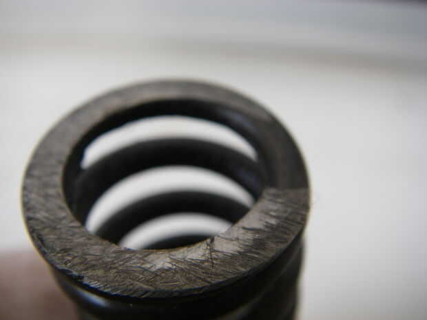 Mi mainspring está mostrando signos de desgaste en los extremos; Coloque la grasa en los extremos (hay un tipo de resorte-tar que algunas personas usan en la primavera todo para reducir la vibración; No estoy utilizando esto.)