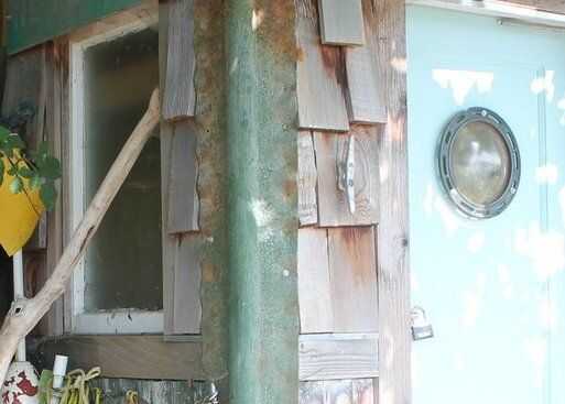 Las ventanas son extra importantes en galpones como este que no tiene ninguna iluminación. Por suerte windows vintage son una fácil encontrar centros de reciclaje como esta encontramos por $5. Mira para los que ya están enmarcadas hacia fuera como esto le ahorrará un paso en la construcción de un marco para ellos. Optamos por una con vidrio de privacidad porque pensamos que sería más seguro si la gente no podía ver dentro de la nave.