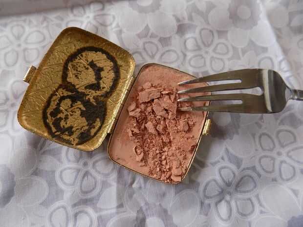 Raspar el viejo polvo del compact con un cuchillo tenedor o mantequilla.