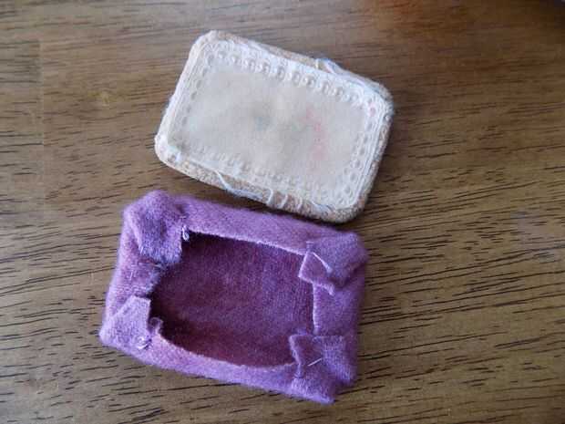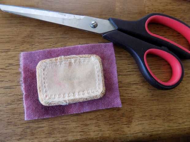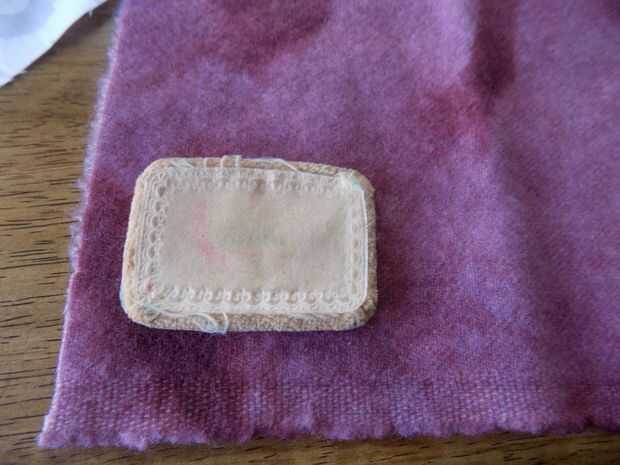 Cortar un trozo de tela sobre una 1/2" más grande que el soplo de la compacta vintage. He utilizado un trozo de lana.