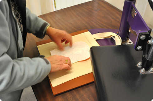 Coloque a su traslado con la cara impresa hacia abajo en la tela. Si empieza a leer un poco del calor de la preimpresión utilice una hoja de teflón o papel de desecho para mantener en su lugar. Si usas la prensa del calor, la placa del oscilación en su lugar y presione hacia abajo hasta que fije en su lugar. Durante 25-30 segundos y luego suelte el plato y retire la bolsa. Si usas una plancha necesita de hierro sobre una superficie dura y resistente al calor, no una suave tabla de planchar. Presione firmemente con su un sección hierro en un momento. Levante la plancha hacia arriba y luego abajo en la sección siguiente. No empuje alrededor en la transferencia ya que puede causar cosas cambiar de puesto alrededor.