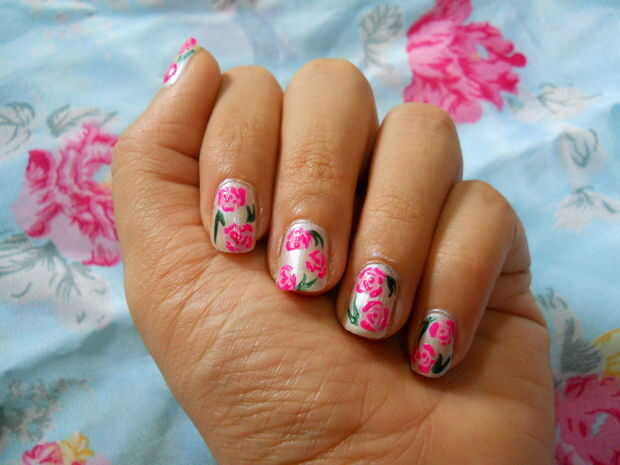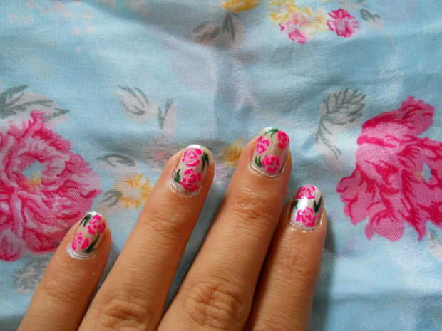 me encantan los estampados de flores patrón antiguo. así que intenté este arte de uñas simple que irá bien en uno de mi vestido.