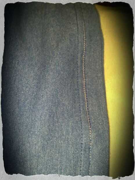 corte el área del muslo de una pierna de los pantalones vaqueros en aproximadamente 15" cuadrada para la base delantera y otra pieza de un área de bolsillo trasero para añadir interés. Cosidas en una imagen de transferencia de tejido de uno de mis g