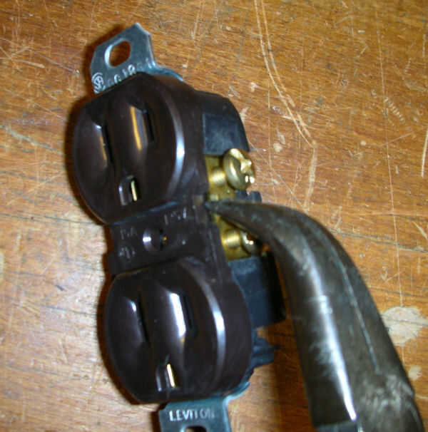 Con alicates de punta, tome el enlace que conecta los dos tornillos de color oro en la salida.