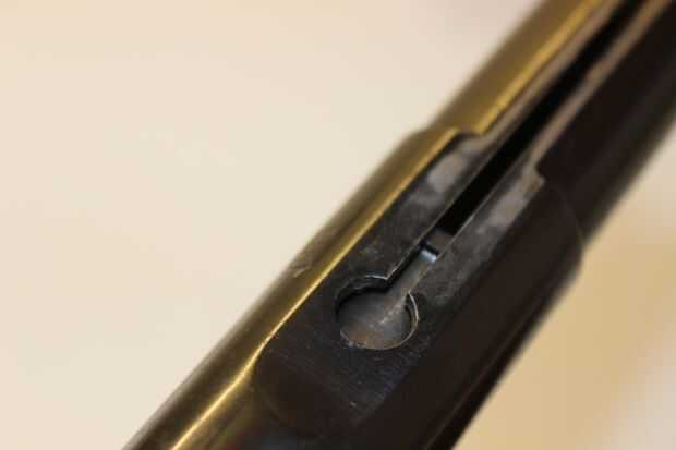 El pistón puede verse a través de la ranura en la parte superior de la pistola.