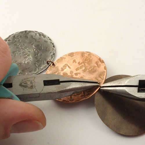 Paso 6: Utilice alicates de cadena para unir espacios en blanco junto con anillas, alternando el color del metal y el tamaño del espacio en blanco.