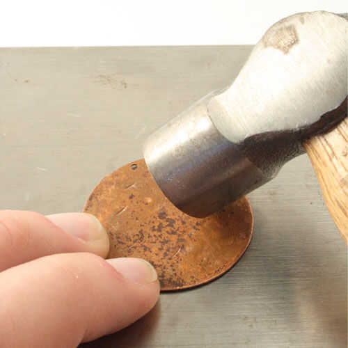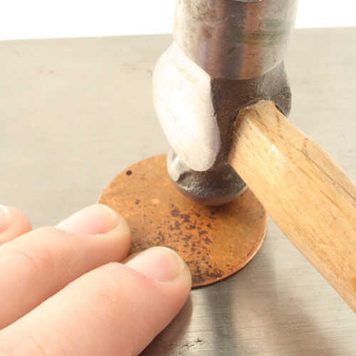 Paso 1: Utilice el extremo redondo de un martillo de Pein de la bola de 4 oz para crear textura y hoyuelos en la superficie de la blanco. Más difícil huelga más grande y más profundo los hoyuelos.