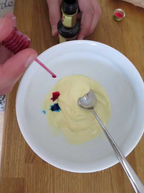 Derretir el chocolate blanco y colorante la mezcla.