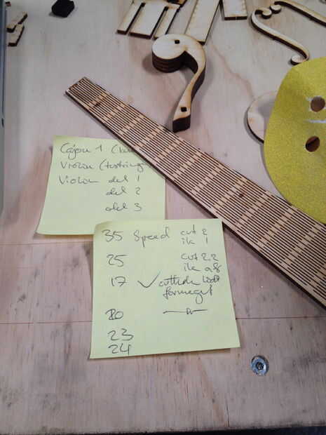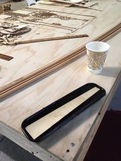 Encontré muy difícil de doblar el diapasón y había probado cosas diferentes. Lo que resultó que mejor funciona para mí fue el láser fuera de foco por bajar la mesa con la madera contrachapada y cortan las líneas profundas de 3/4 a través del material (Asegúrese de hacer unas pruebas con un trozo pequeño para encontrar el ajuste correcto). Cortar completamente aunque los bordes del diapasón, ha añadido una o dos capas en el mismo archivo, para que el láser iba alrededor de la mesa un par de veces. Obviamente ello de una forma más inteligente manera ;)
