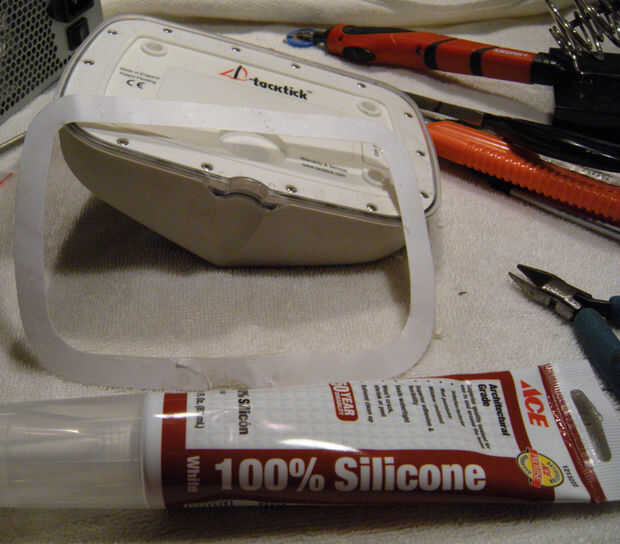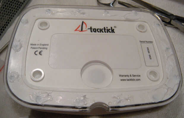 Creo que este paso es opcional, y puedo arrepentir en el futuro. Quería asegurarse de que no hay agua podría filtrarse más allá de los agujeros, usé el sellador de silicona para sujetar el anillo de plástico en la parte posterior. Secó un poco de pegote en cada tornillo así. Sé que esto hará que sea muy difícil volver a entrar a la unidad si alguna vez tenemos que reemplazar las pilas otra vez, pero supongo que cruzaré ese puente cuando vengo a él. Esperemos que sea de 10 años a partir de ahora.