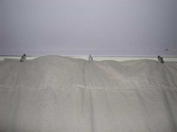 Con los ganchos de pinza cocodrilo, conecte su cortina al cable. Tenga cuidado de no aplicar demasiado peso en cualquier punto dado como usted no sabe todavía si su equipo se mantenga.