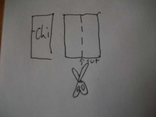 Tomar la pieza que simplemente cortar y cortar a lo largo del pliegue que se hace por el borde de la bolsa. (corte lateral)