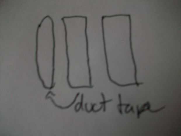 Enrollar un trozo de cinta adhesiva para conductos (hacer esto tan estrecha como sea posible) y esto se pega al extremo sellado de la mitad intacta de su saco. Tomar una de las mitades de su otra mitad y atach él pequeño pulgadas de lado (lo siento si esto es confuso) poner cinta en ambos lados del extremo abierto de la intack mitad y conéctelo a la aleta. (otra vez siento si eso te confunde, pero no puedo pensar en cualquier otra forma de decirlo)