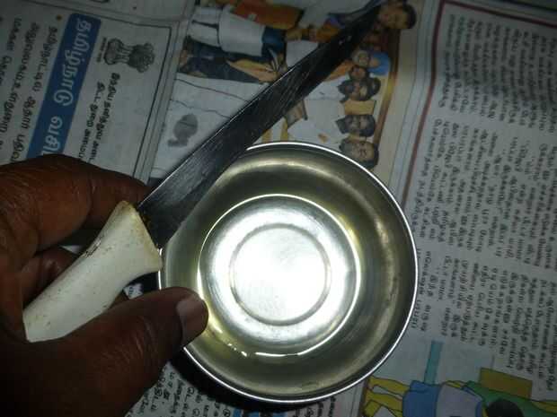 Es necesario un cuchillo para la carne de la cosecha. La yaca entera está llena de látex blanco y pegajoso. Así que utiliza cualquier aceite de cocina liberalmente sus manos y el cuchillo antes de comenzar. También, colocar un viejo periódico debajo de la fruta para evitar que el látex se adhiera a su área de trabajo.