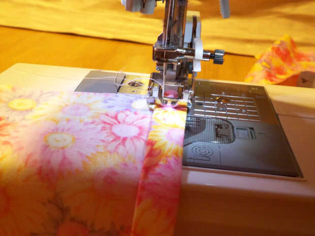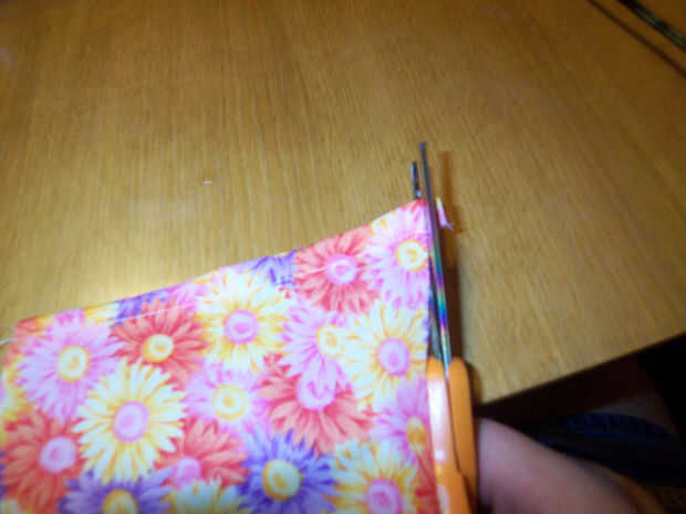 Coser a lo largo de este doblez 1/4" de la tapa exterior. Recorte cualquier hilo y tela que se pega hacia fuera.