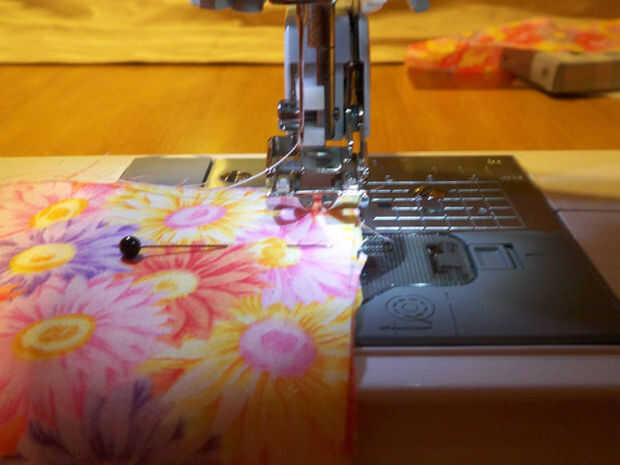 Coser a lo largo del borde inferior de la tela con un margen de costura de 1/4".