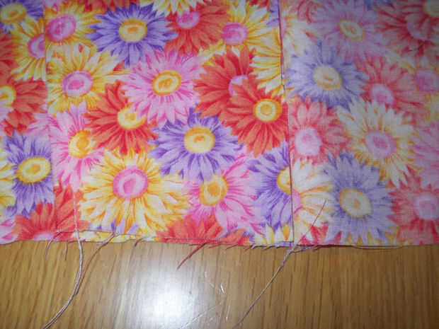 Bolsillo atrás primer doblez. A tope el borde inacabado de bolsillo contra la costura del bolsillo primero. Coser el bolsillo segundo sobre el uso de 1/2 de margen de costura.