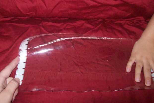 Encontrar donde la etiqueta era pegada y corte recto por la mitad hasta casi la parte inferior de la botella.