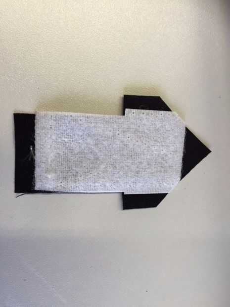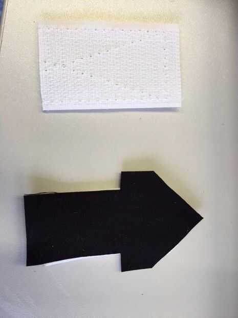 - Coser la mitad más suave del Velcro sobre el tejido de la pieza base de la flecha por la máquina o a mano (usando la máquina de coser hará que la Unión más fuerte).
