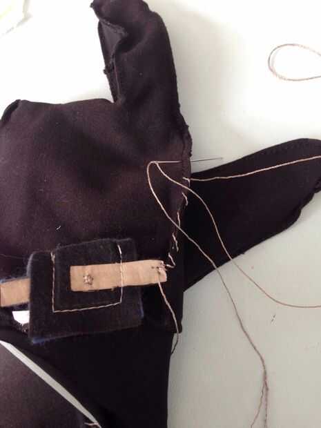 - Coser el portapilas dentro de los guantes con hilo no conductor. (Nuestro han sido cosido en el interior y la parte superior del guante para que queden en la parte posterior de la mano).