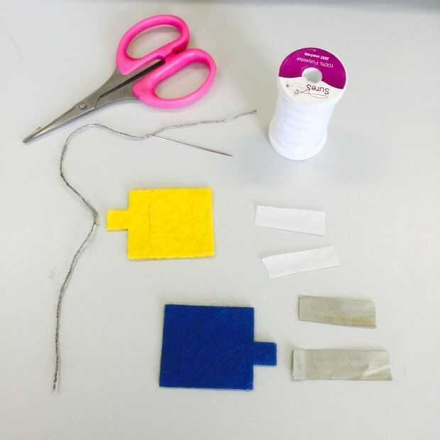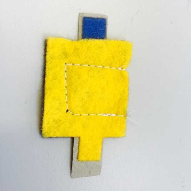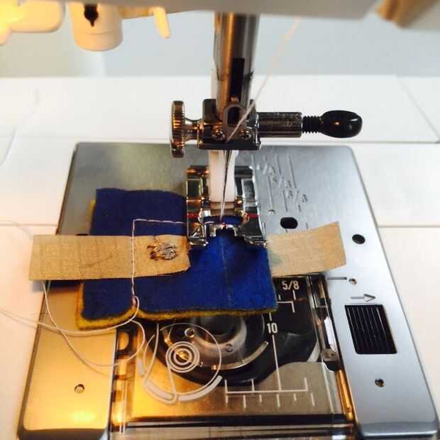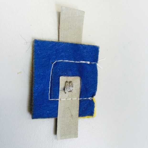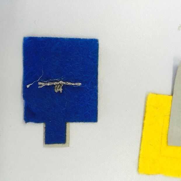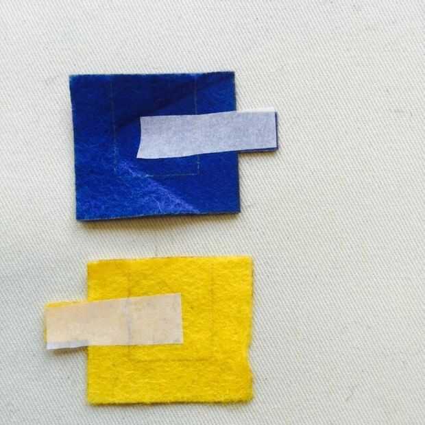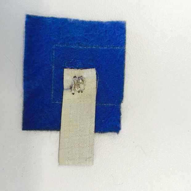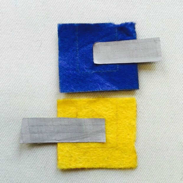 - Coser las dos piezas de tejido no conductor en la máquina de coser con hilo no conductor a lo largo de los tres lados de la Plaza (ver plantilla).