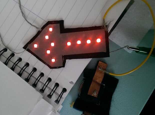 - Utilice una pequeña cantidad de pegamento en el reverso de la flecha reflectante para pegarlo hacia abajo sobre la parte superior de los LEDs.