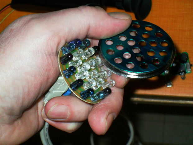 diagramas de este proyecto la construcción de barato pero en otros lugares "gafas de visión nocturna efectiva" se vendieron a dos veces el precio.  Estos recojo emitido luz infrarroja de un montón de LEDS IR.  Todas las piezas se pueden comprar
