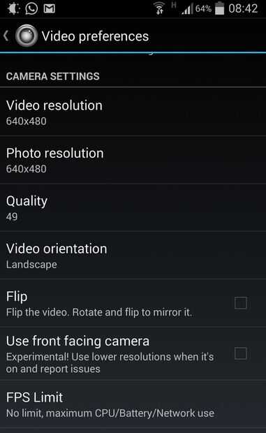 Abrir la aplicación, haga clic en "Configuración de vídeo" y ajuste Resolución vídeo 640 x 480. Puesto que la potencia de procesamiento de Edison es limitado, no podemos trabajar con imágenes de resolución completa de la cámara en OpenCV. Además, imágenes más pequeñas se transmitirá más rápido a través de WiFi, mejorar los FPS en Edison.