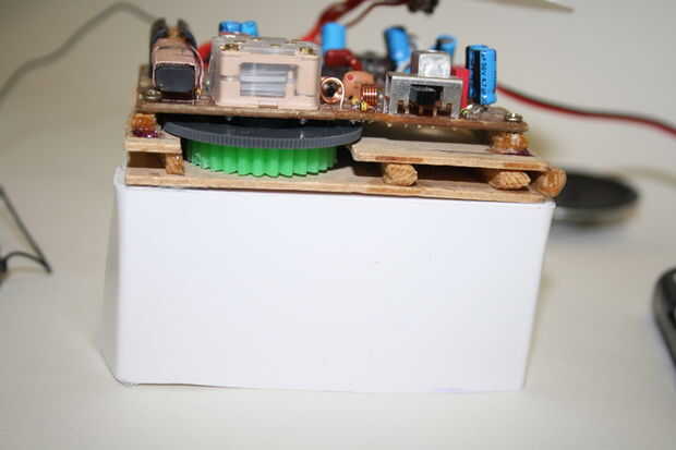 Las tarjetas claves funcionan mediante un sistema de cremallera. Pegué un pequeño engranaje de un juego de kinect para el dial de sintonización existente que está conectado a la placa de circuito. Luego construí una clave de sistema de guía por el tablero (ver diagrama) para que cuando la llave se inserta en el boquete se convierte el dial de sintonización que se une a la placa de circuito en la parte superior, que sintoniza la radio. Esta construcción se puede luego pegar encima del soporte. Esto debe ser cuidadosamente alineado previamente como su posicionamiento determina si la tarjeta lo sintonizará o no. Te recomiendo una tarjeta a través de la abertura en el lado de la radio y poner en el mecanismo y luego pegado abajo como esto asegurará buena alineación.