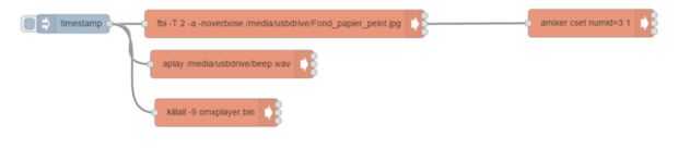 Para cumplir con el flujo de trabajo, nos aseguramos de que matamos a cualquier flujo de vídeo funcionando antes de jugar uno nuevo, jugamos un fresco sonido reconocible para confirmar un K7 ha sido aprovechado, y disponemos de un fondo por defecto de la imagen que no se solicita.