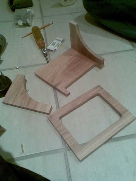 Hice todo el corte con una sierra caladora eléctrica barata. Para áreas difíciles, usa un taladro hacer un agujero en el centro de la madera, luego introduce la broca de jigsaw y comenzó a cortar a partir de ahí.