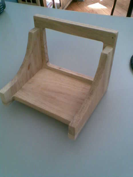 No tengo fotos del paso de la tinción, pero es muy simple. Compré una lata $6 de tinta para madera Miniwax "nogal" en la tienda de hardware. Guantes de goma (es venenoso) extendió la mancha sobre la madera con un pedazo doblado encima de la toalla de papel. Déjelo secar durante 4-6 horas.