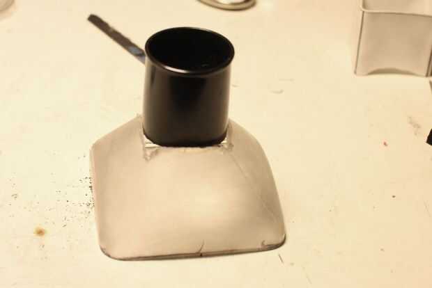 Cortar el cuello de la botella en su base como se muestra. Cortar el contenedor de película de 35mm de cerca de 1/2 pulgada de la parte inferior. Ahora usando el Dremel rueda corte hacer el agujero en la pieza de la botella un rectángulo como se muestra en la segunda foto. La bodega debe ajustarse sólo el envase de película de 35mm cuando es aplastado en un rectángulo. Luego pegamento caliente agradable y sólida por lo que permanece en su lugar.