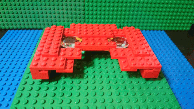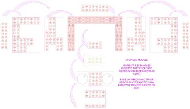 La fotografía se ilustra para un módulo ocular alrededor de todo el camino. Las piezas amarillas sobre la plataforma verde están solamente allí para elevar el módulo base y no son parte del proyecto.