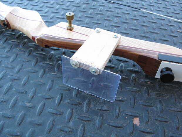 Nota: Hay al menos un problema potencial de seguridad, que es que tal vez si una flecha salta o rompe y llega a la vista podría rebotar en usted. No utilice las flechas torcidas y siempre prueba las flechas de carbono antes de su uso. Uso la vista bajo su propio riesgo. Si esto es una preocupación para usted, no utilizar la vista, o tal vez utilizar tornillos de plástico de corte o un pegamento débil (p. ej., fusión en caliente) para fijar la vista plástico al madera contrachapada de montaje para un fracaso más controlado.