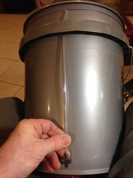 He marcado en el exterior de la cubeta debajo de las líneas de los galones "vista de cristal". Apenas para la referencia de mi cubo de 5 galones, las dimensiones para las marcas 1, 2, 3 y 4 galones eran de la parte inferior respectivamente, 3 ", 5½", 7 referencias "y ⅛ de 10".
