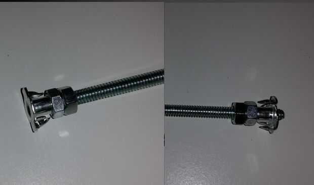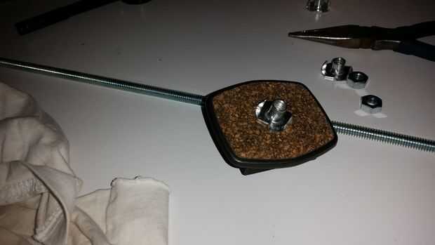Aquí está un diagrama de la Asamblea (t-nut)(nut)(nut)(rod)(nut)(nut)(t-nut); en ambos extremos la parte plana de la tuerca en t esté orientada hacia afuera.