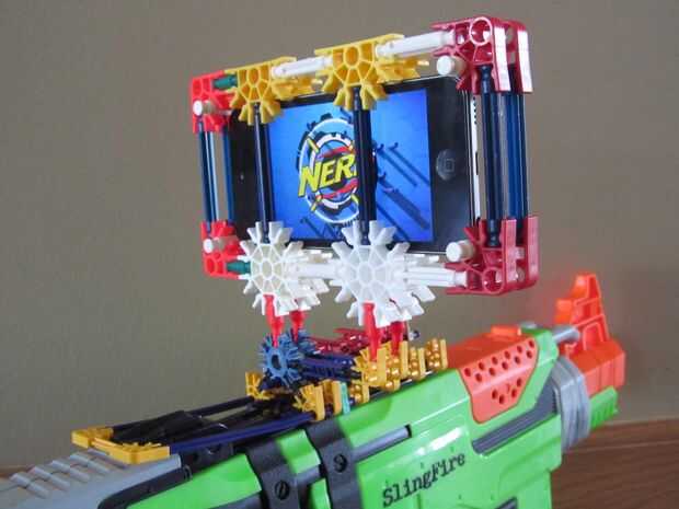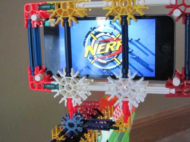 Nota: Este es mi primer siempre K'Nerf accesorio/vista/soporte. Esto es algo que hice mientras estaba enfermo, pero creo que es de alta calidad. Recuerda comentar y seguir las notas de la imagen al edificio! Esta se construye para tener un iPod 5, pero usted debería ser capaz de modificarlo.
