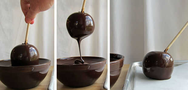 Paso 2: Sumergir las manzanas de caramelo en el chocolate