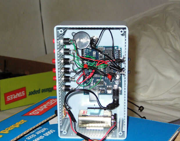 -conexión de la alimentación (conector de barril para 9v batería snap mediante conmutador)