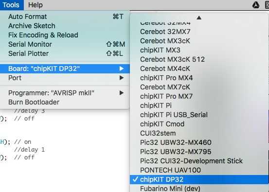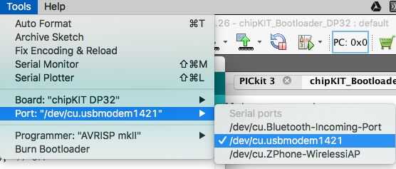 Lo que usted necesita: un microprocesador ChipKIT DP 32 (todos los cables incluidos) y un ordenador portátilPara programar un DP 32 sin un dispositivo programador (Chipkit PGM), es decir, con arduino IDE, necesita un programa residente de memoria; pr