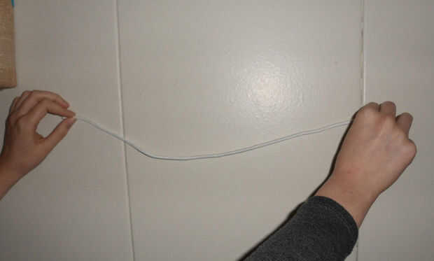 2. medir la cadena horizontal contra la pared para ver cuánto quiere que sea. Tenga en cuenta el número de fotos y el hecho de que a atar nudos en el extremo.