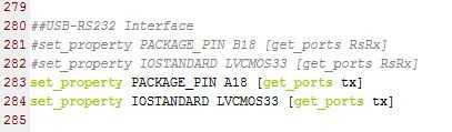 set_property PACKAGE_PIN A18 [get_ports tx] set_property IOSTANDARD LVCMOS33 [get_ports tx]