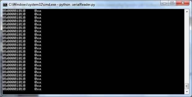Escribí un programa python pequeño que lee del puerto serie e imprime en la consola con