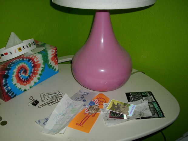Fuentes: Una lámpara con una pantalla plana, no plisado Fotos, garabatos, San Valentín, recortes de revista o cualquier otra cosa que usted quiere BINDER Clips preferentemente, pero Clips de papel Jumbo trabajo también Cinta, opcional
