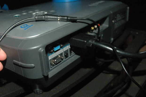 En el paso anterior que mencioné que es bueno tener un mando a distancia, no tengo el control remoto para mi proyector lo recogí de segunda mano pero si tienes acceso a ella un mando a distancia es super útil para encender el proyector encendido o apagado durante un show sin interferir con la banda, si algo sale mal wile la banda está jugando , como su equipo falle, no puede subir en el escenario para apagar el proyector hasta que la banda que significa que vas a tener que salir de cualquier pantalla por defecto el proyector abandona (el logotipo de sharp notevision en el siguiente paso para mí) en la pared hasta que usted puede conseguir en el escenario o el proyector se apaga automáticamente. Mal.