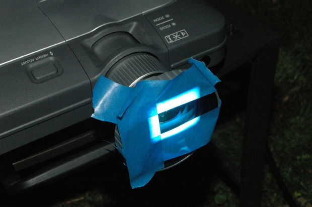 Usar unas tiras de cinta adhesiva sobre la lente del proyector para suavizar los bordes de la proyección y ocultar cualquier circundante cajas o ventanas. Coloque la cinta sobre el bisel de la lente pero no deje que se adhieren al vidrio.