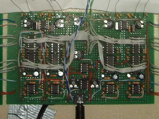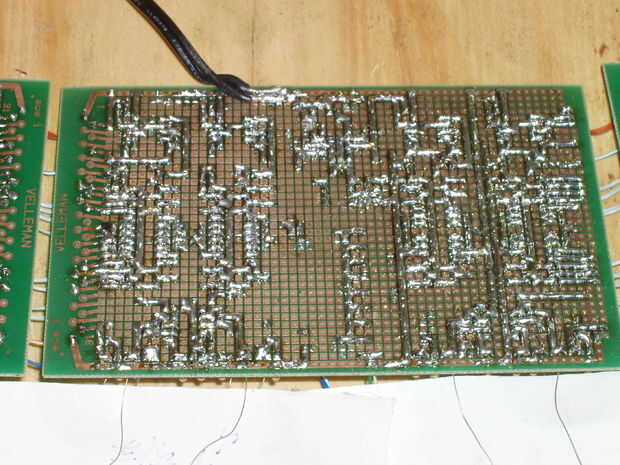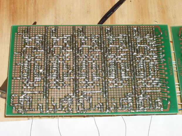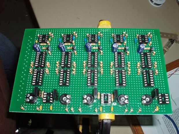 Cada ancho de banda ocupa una franja vertical de PCB, con, de arriba a abajo, el filtro de AC a DC, registro a Lin y circuitos de exhibición. Los tubos nixie se unen entonces a la parte inferior de la Junta, donde se puede montar.